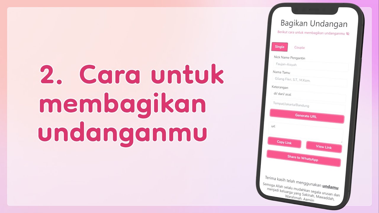 Undamu memudahkan kamu untuk membuat undangan syar'i. Hanya dengan genggaman, kamu bisa pesan undangan yang kamu inginkan. Kamu bisa lihat video berikut sebagai cara untuk pesan undangan. Silahkan hubungi admin jika masih ada yang ingin kamu tanyakan. Tanya Admin